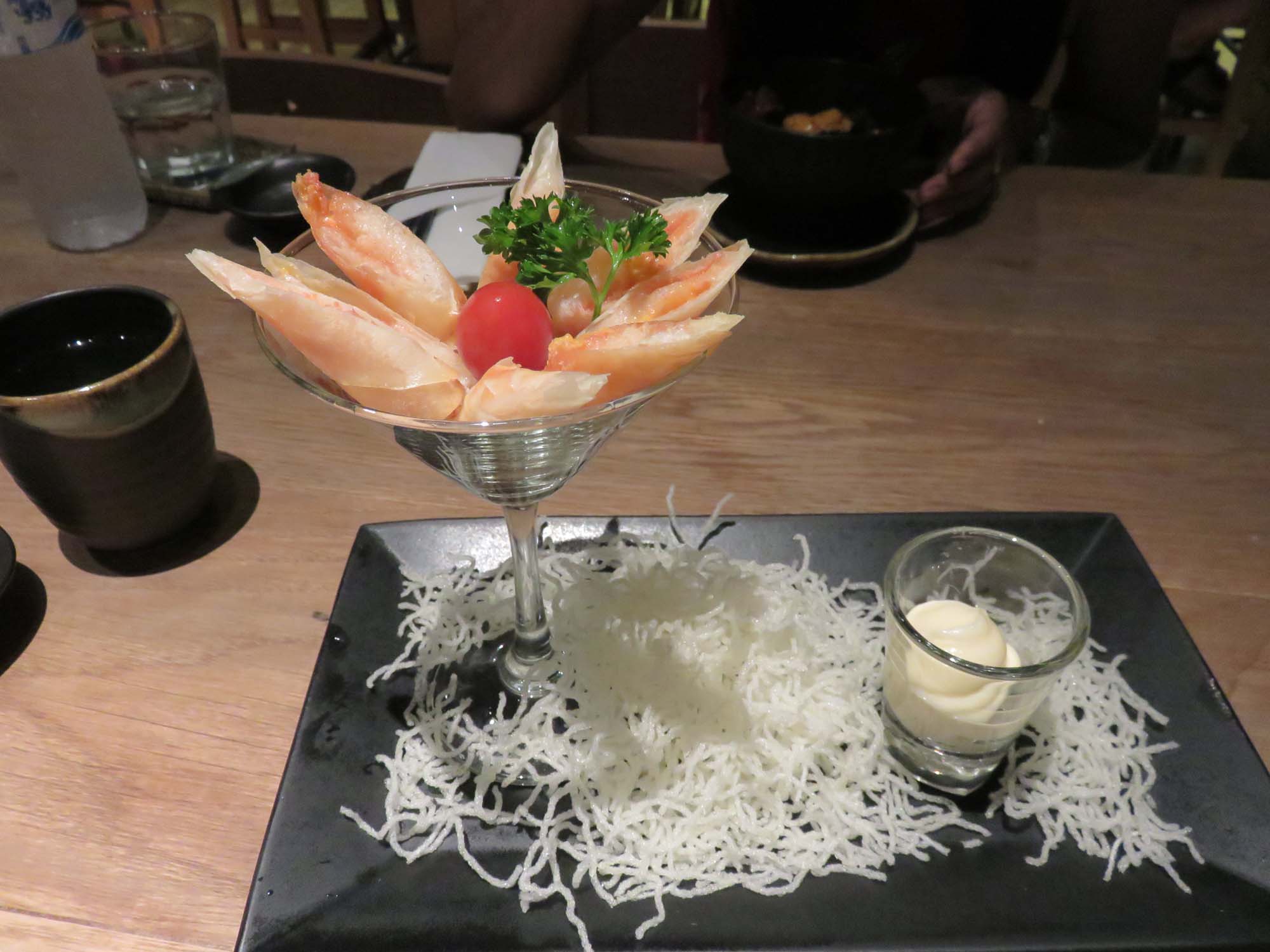 | C4 400THB 上に乗っかっている のはスモークサーモンで・・・ 中身はなんだったっけかなあ・・・ とにかく美味かった。きゅうりも 入っていた。 |