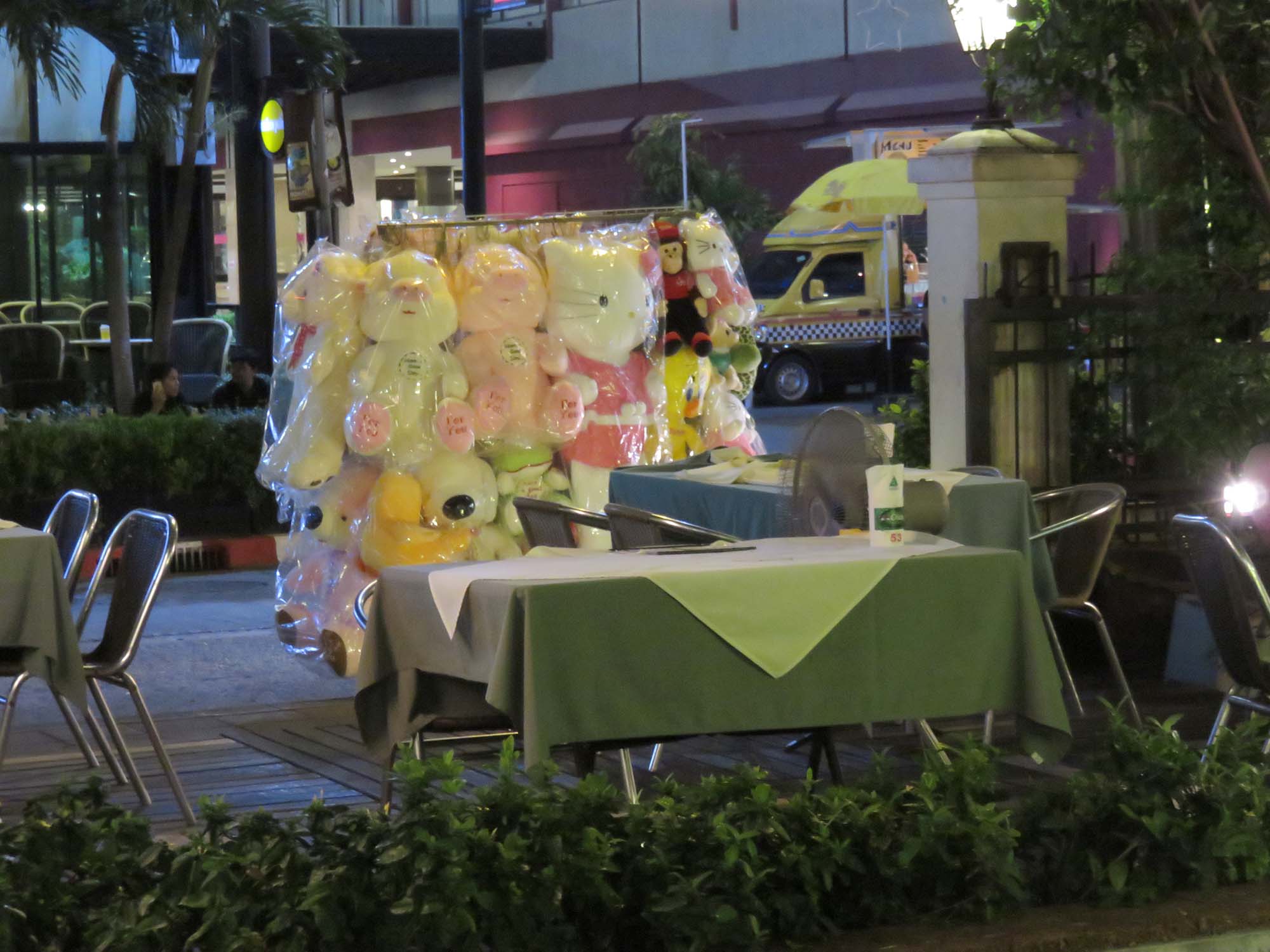 ぬいぐるみの露店が店先にあり、 付近でタバコを吸っていたら ゲルマン人に売り子と間違われた。 |