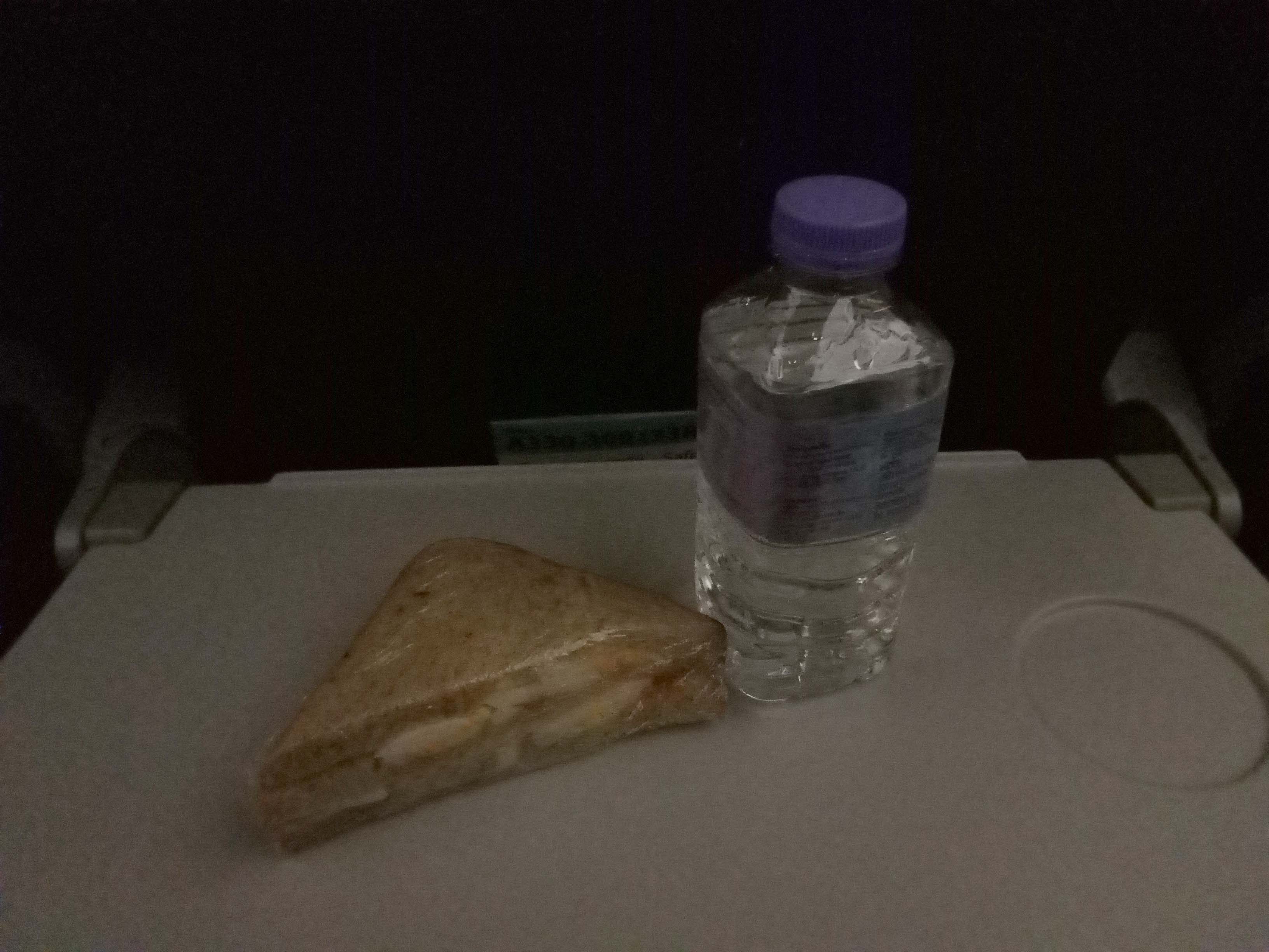| アイスまであった。 | 帰りの機内でも、 お約束の恐怖症で食事は摂れず。 軽食のサンドイッチも 持ち帰りもしなかった。 |