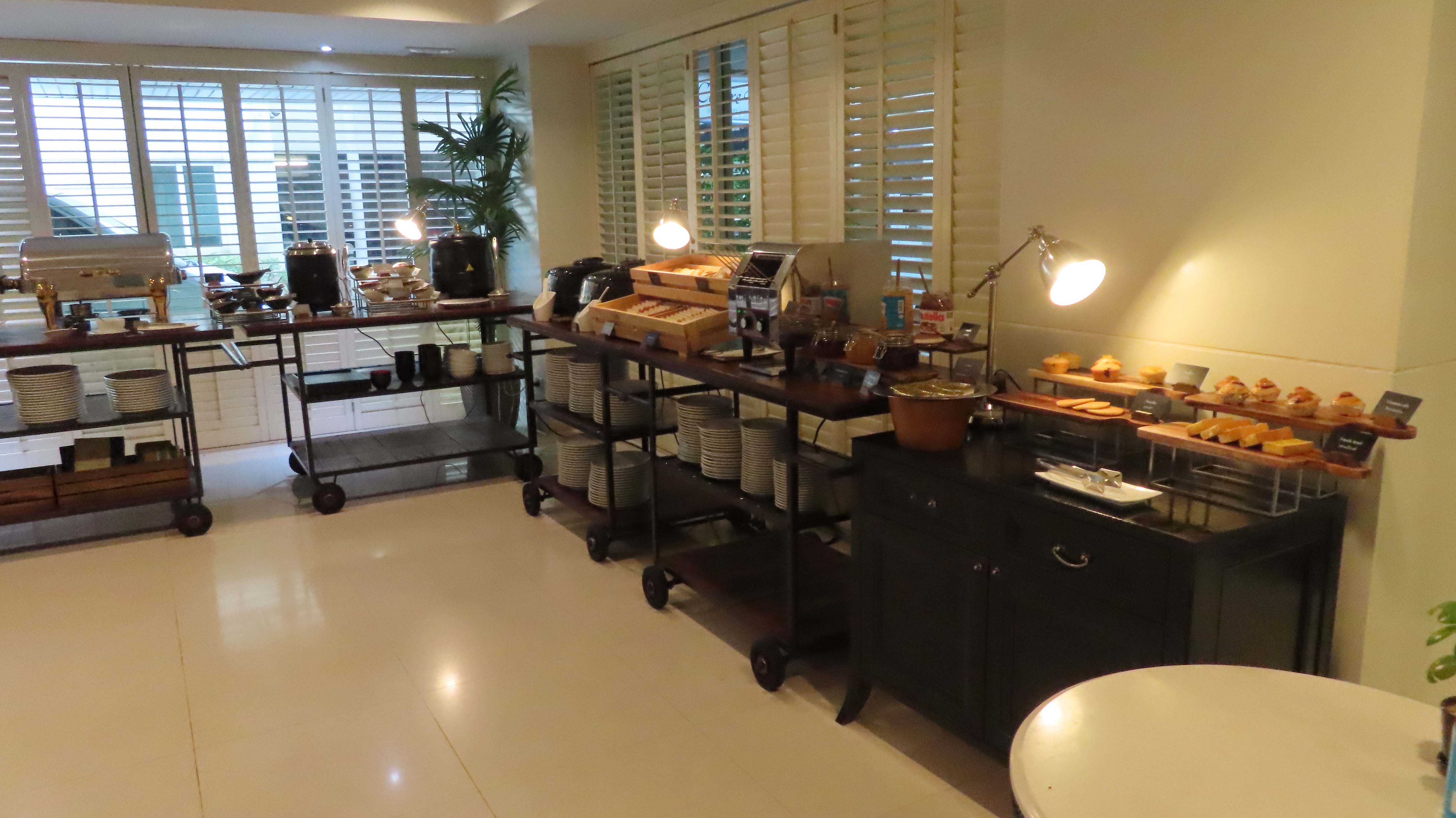 | ホテルの横に薬屋があった。 | ロビー | 朝食会場の脇。 | 朝食会場。 寒かったが空いていた。 |