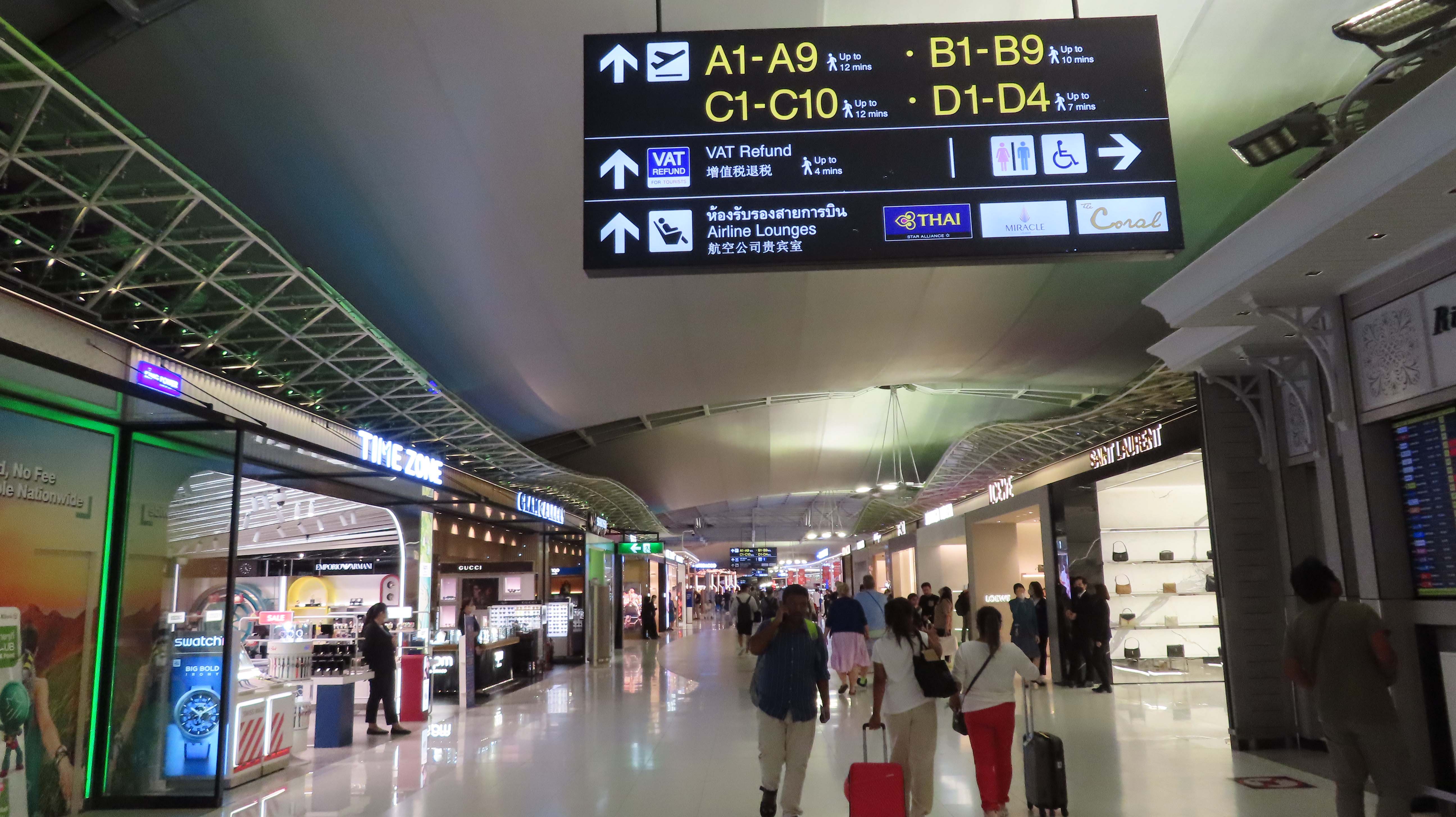 | 空港にはVATの還付を 受けたかったので早めに 来ることにして、18:30に部屋を出た。 それは正解で、道が混んでいて 1時間掛った。 VAT還付の窓口はどん突きで、 チェックインする前に ここで受け付けてもらって、 最終的にイミグレで品物を見せ、 免税エリアの窓口で金をもらう。 全部でTHB 5,290現金でもらった。 5%というところだろう。 |