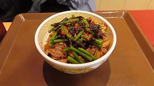 妻は黒マー油ニンニクの芽牛丼 | 私はノーマルにみそ汁と おしんこセット。 |