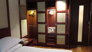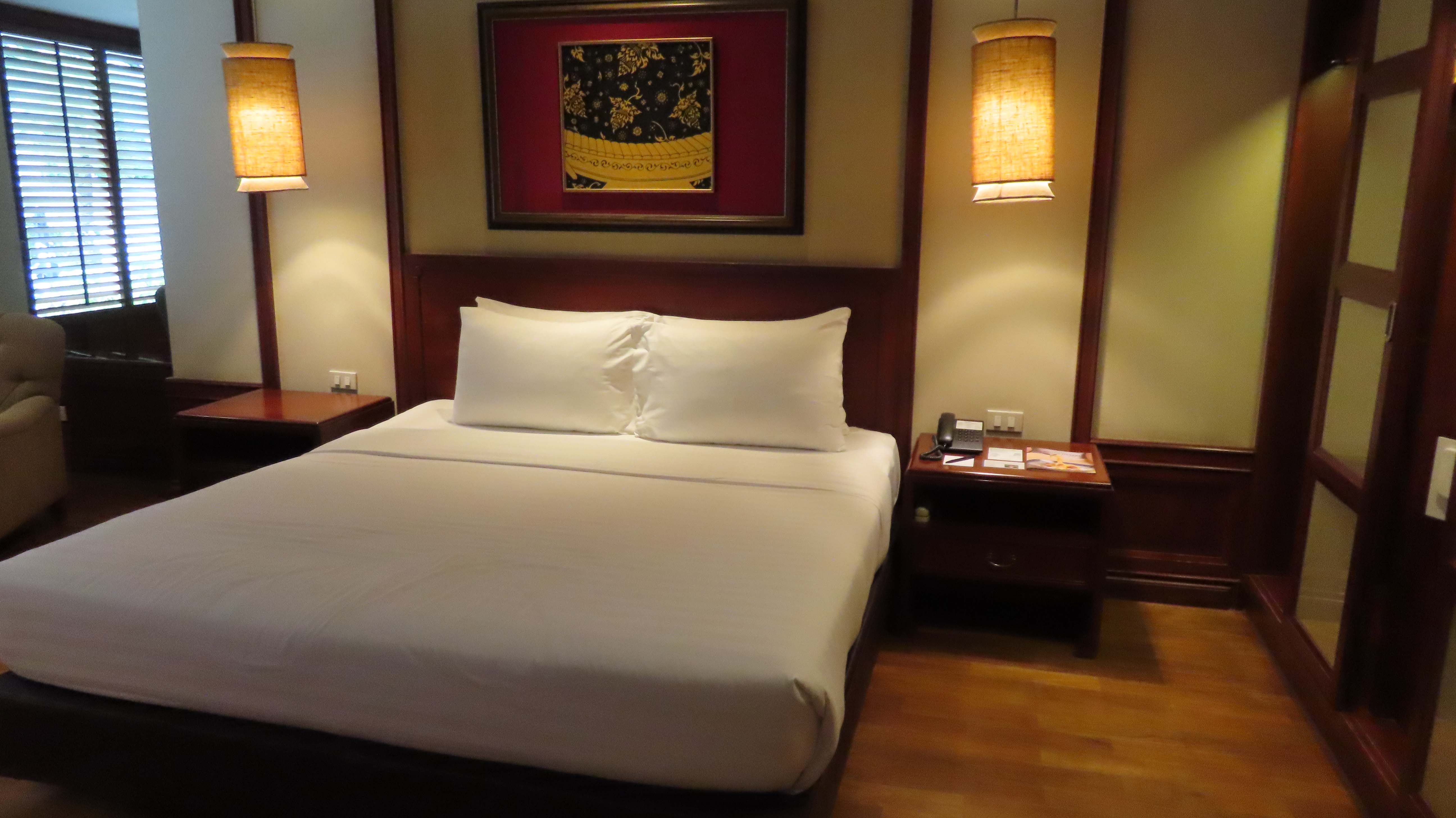 | 泊まった部屋。 禁煙、WiFi、朝食付きで 1泊THB 3,000しないくらい。 アイロン台まである。 |