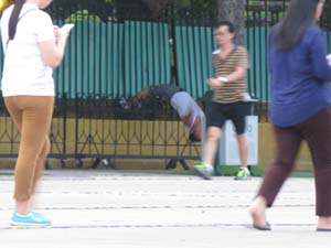 | スターバックスの前で(灰皿があったので)タバコに火を付けようとしたところ、 狭い通りの向かいにいる男がこちらを向いて何か言っていたので、 タバコを吸うなと言っているのかと思ったが、地面を擦るような仕草をしていたので、 なにかと思ったら靴磨きだった。 |