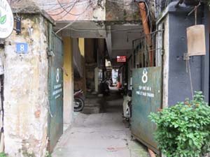 左記の建物脇の路地に入る。 | この国の人たちはこうやって どこででも軒先で宴会している。 |