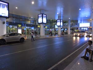 | ノイバイ国際空港にて。タバコを吸いながらタクシー乗り場の様子を 見ていると、「Where are you go」「How many people」としつこく 訊いてくる運ちゃんがいた。10分以上付きまとわれた。 空港内にWiFiがあるようだったが、パスワードがよく分からなかった。 |