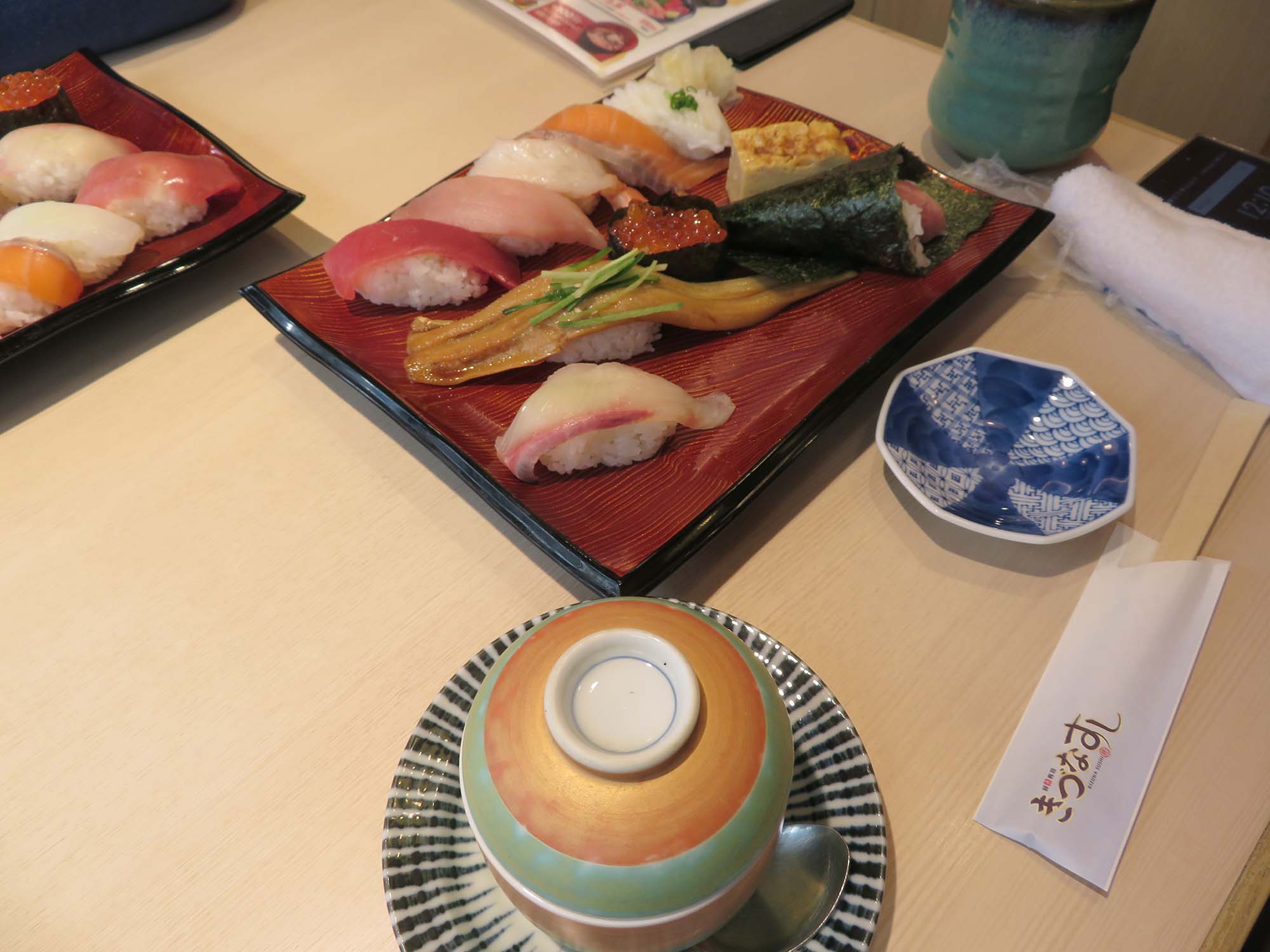 | 寿司屋がいっぱいあって、 写真の店に入った。狭いが 店内に喫煙所があった。 |
