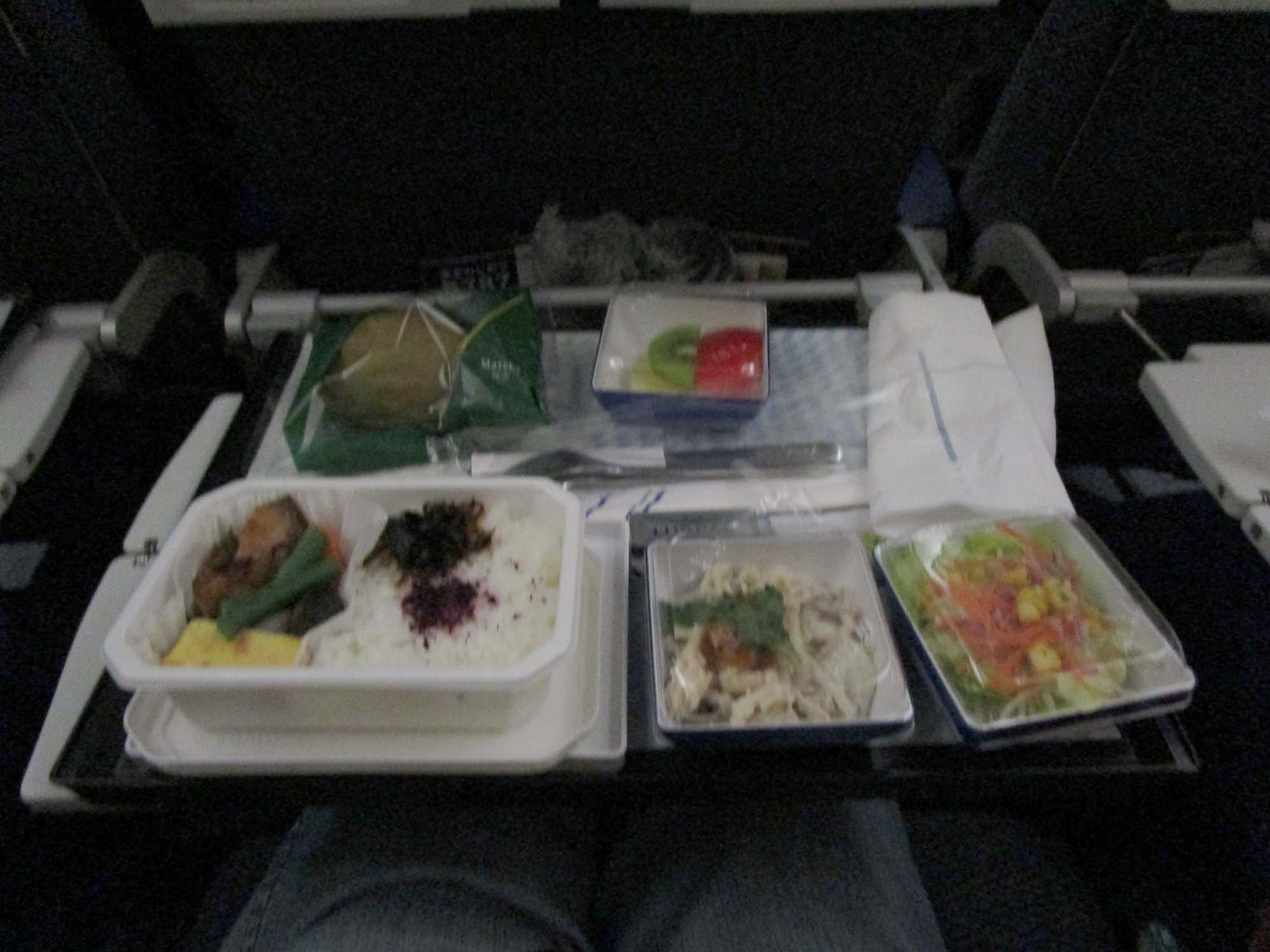 今回の機内は背後が壁の席であり、遠慮なくシートを倒すことができ、 殆ど揺れなかったので飛行機恐怖症は発症しなかったものの、 |