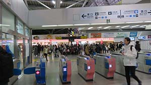 品川駅で乗り換える。 車内はぎゅう詰めだった。 |