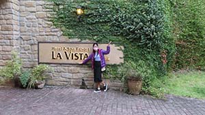 | こちらは別の棟とつなぐ通路。 | 通路の先に噴水があり、 こっちはより高級な宿泊棟だ。 |