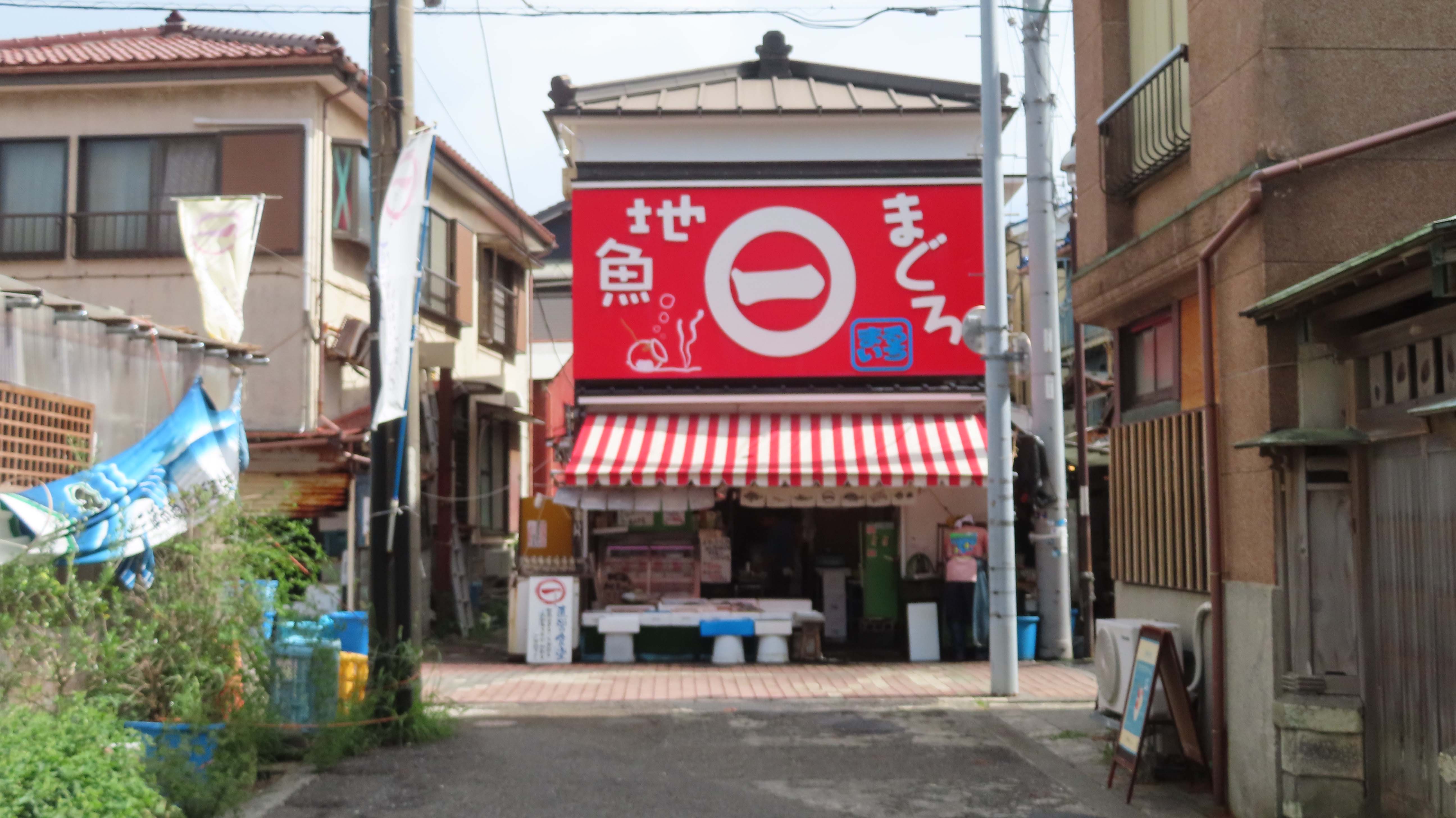 | マグロの切り売りは そこいらじゅうでやっていた。 包装がしっかりしていたので、 こっちで買った方が良かった気がした。 土産になるような 菓子の類も売っている。 |