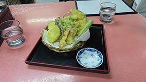 | すごいものが飾ってあった。 | 多分、射的場と同経営なのだろう。 | 天ぷら一人前とクルミそば2人前で \2,400 会計は半分ボケた老婆がしていた。 ちなみに、うまくなかった。 |