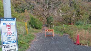 | 廃業した店舗跡 | 河原へ下る道は 通行止めになっている場所もあった。 |