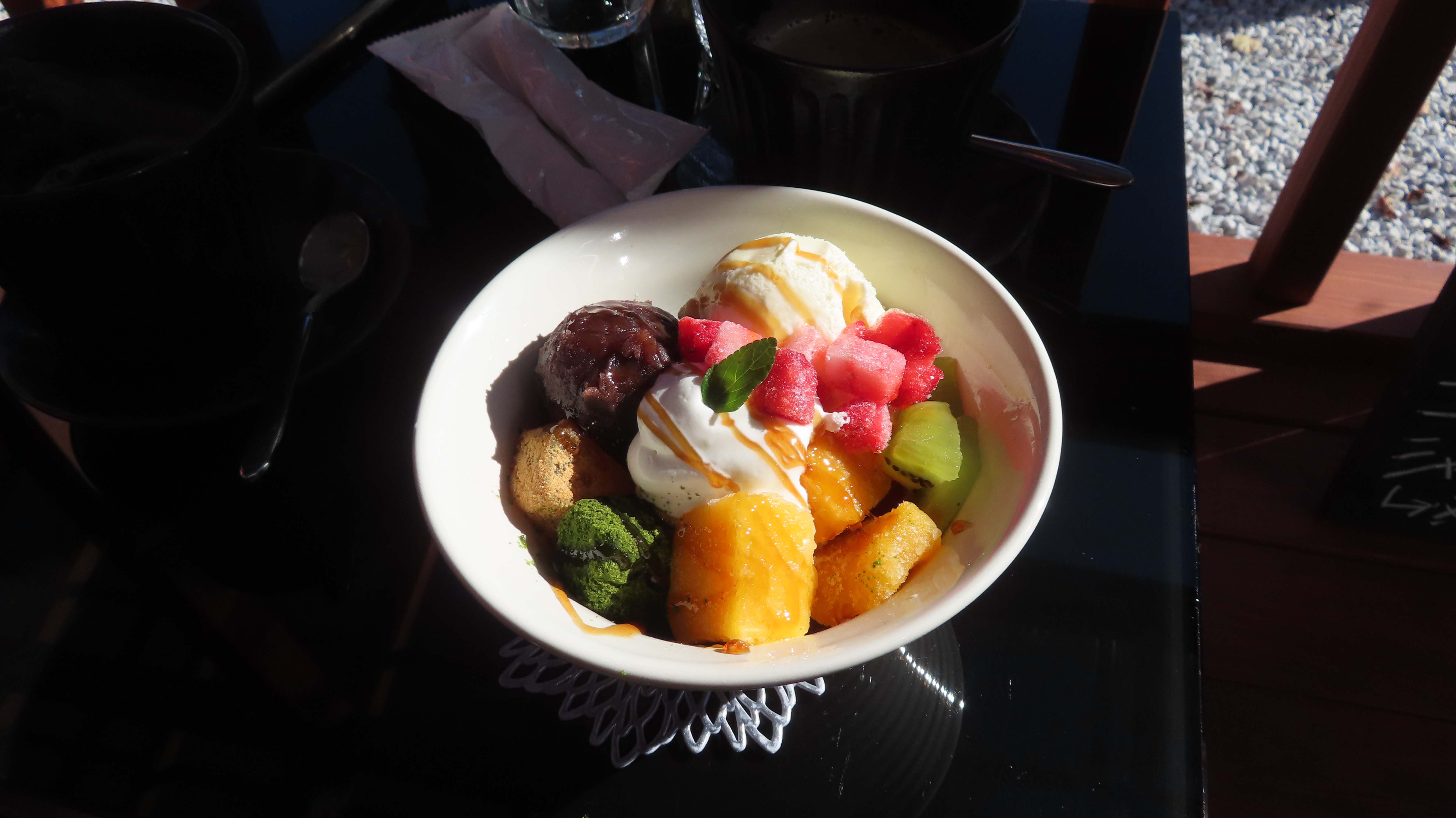 あんみつ \900 | テラス席で線路を見ながらお茶。 |