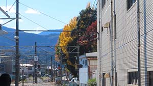 | 9:10の電車に乗れるよう、8:55に出発。 ここはまだ紅葉していない。 |