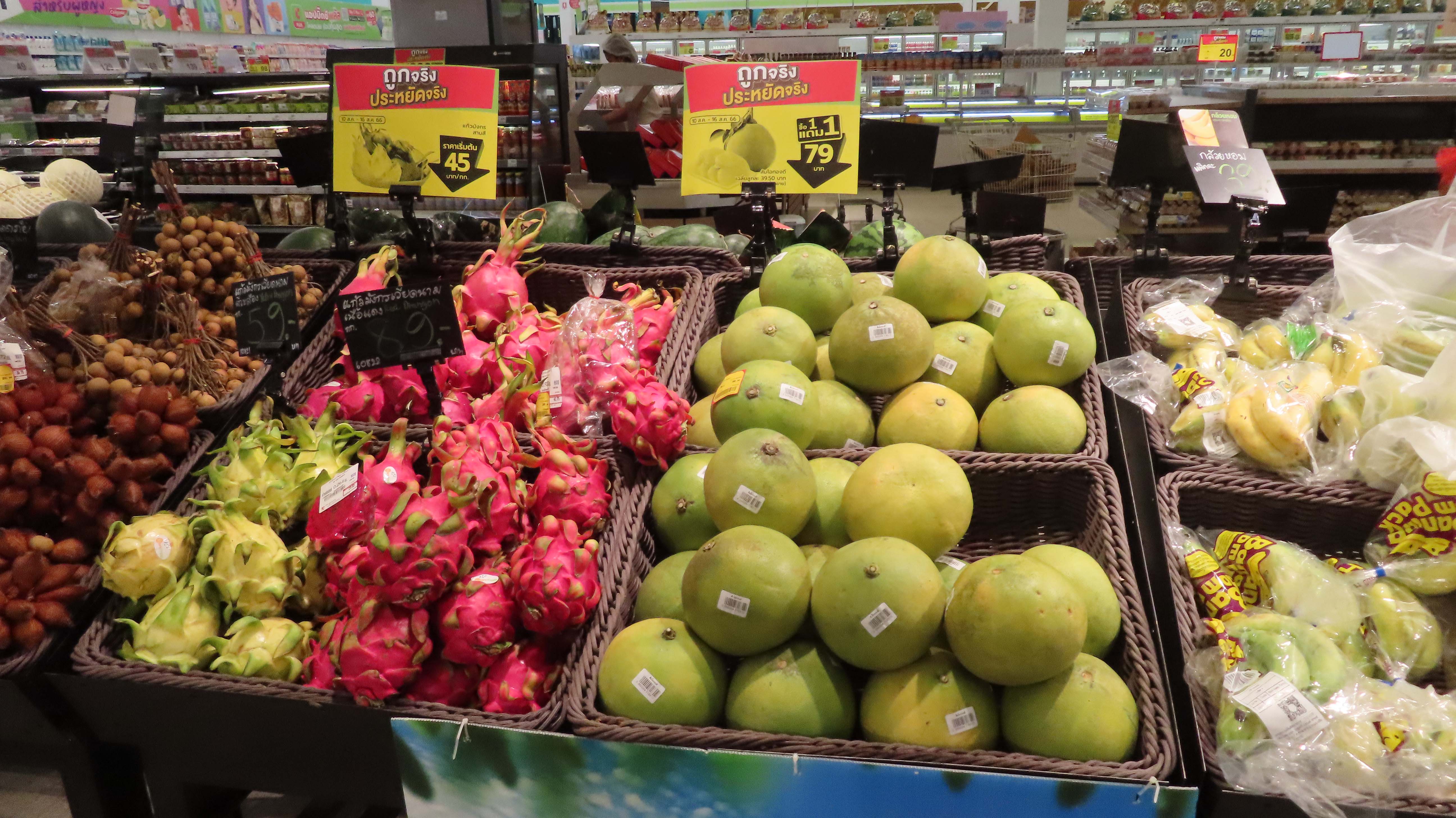 魚は熱帯魚で、川魚中心。 | こちらはソム・オー。 はっさくのような柑橘類。 |