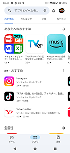 | Play Storeアプリを開く。 この画面でいうと、右上のRyzenの マークに当たる、設定を開く。 |