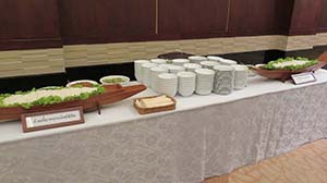 夜のパーティの準備。 | こちらは夕食ビュッフェの一部、 グッディオ。 他のものの撮影を忘れたが、 料理は総じてうまかった。 |