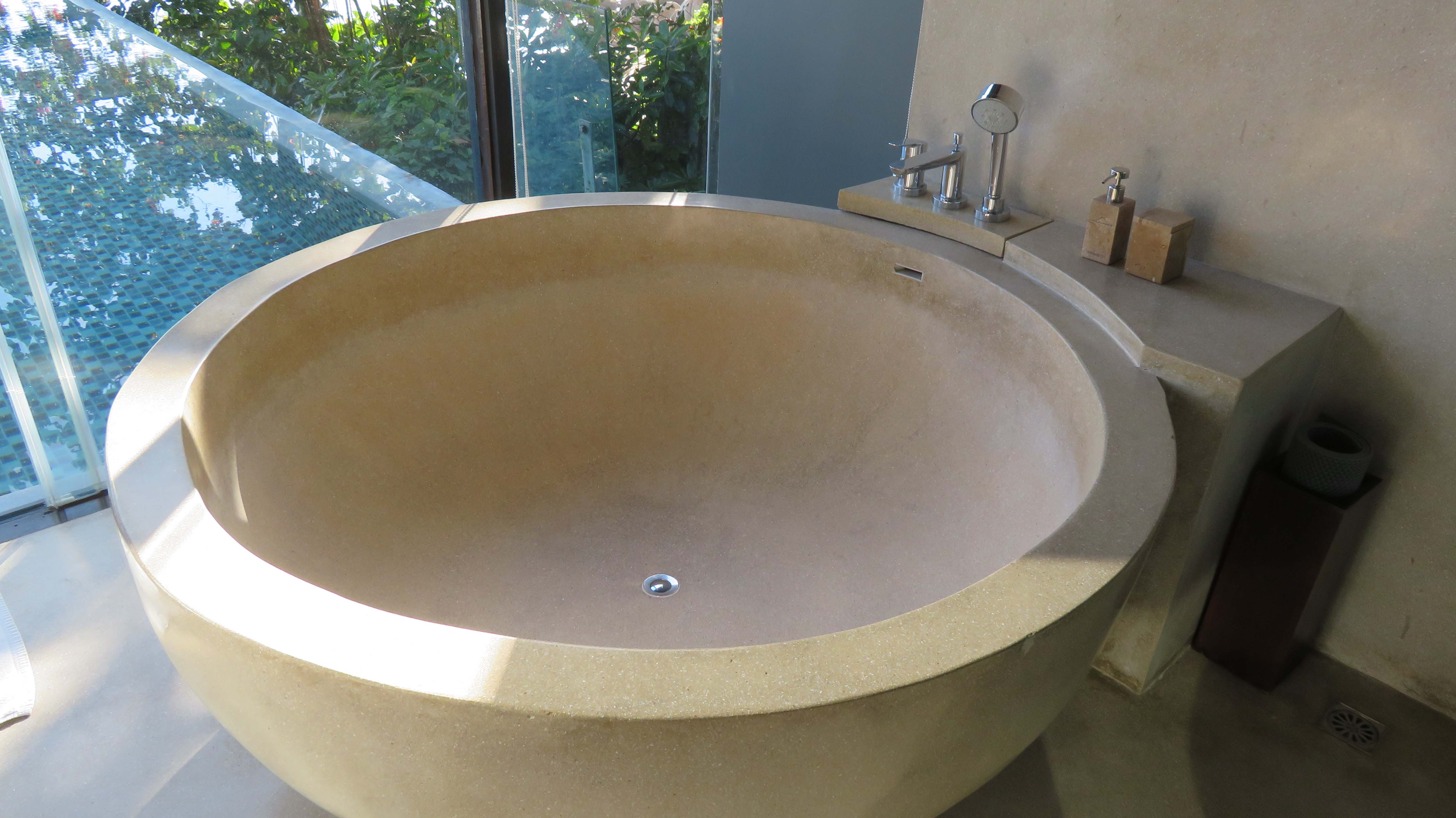 | 湯舟は石造り。 もちろんLUSHのバスボムを 持参して浸かった。 |
