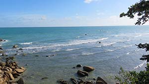 | 見えてきた。いまさらながら、ビーチもすごい環境だ。 | ||||