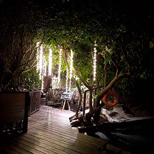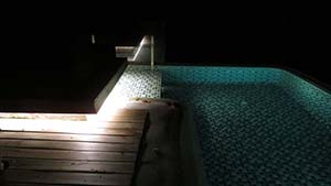 部屋の外のプール。 すぐ外には、人の動きに反応する ランプが設えられている。 |