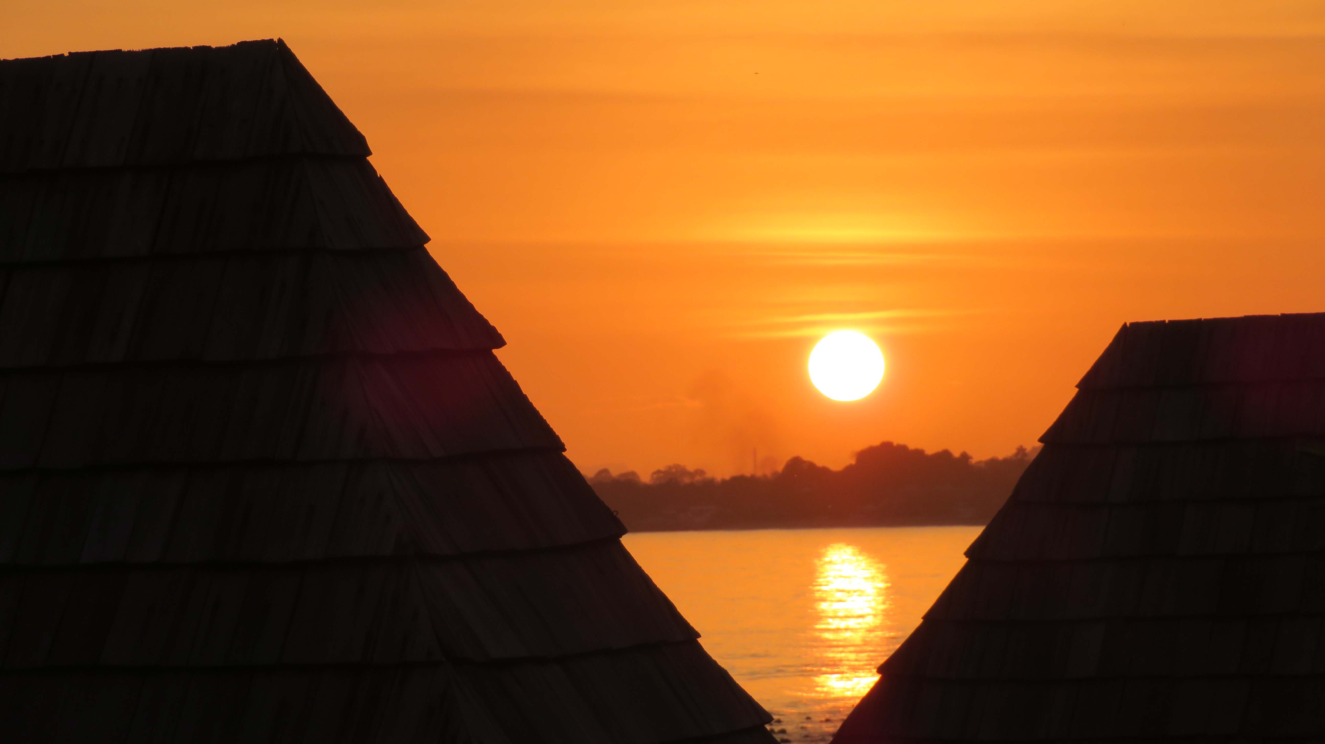 | 最前列は間違いなく要予約。 私は行く前からここに目を付けており、着くなり予約しようとしたのだが、 すでに満席で、2日目に予約することができた。 2日目にして正解で、3日目は曇っていた。 嫁さんのカメラの高性能には目を瞠った。 拡大したときの粗さはデジカメに敵わないが、PCの画面で見る分には、 彼女のカメラで撮った写真の方がきれいに見えた。 |
