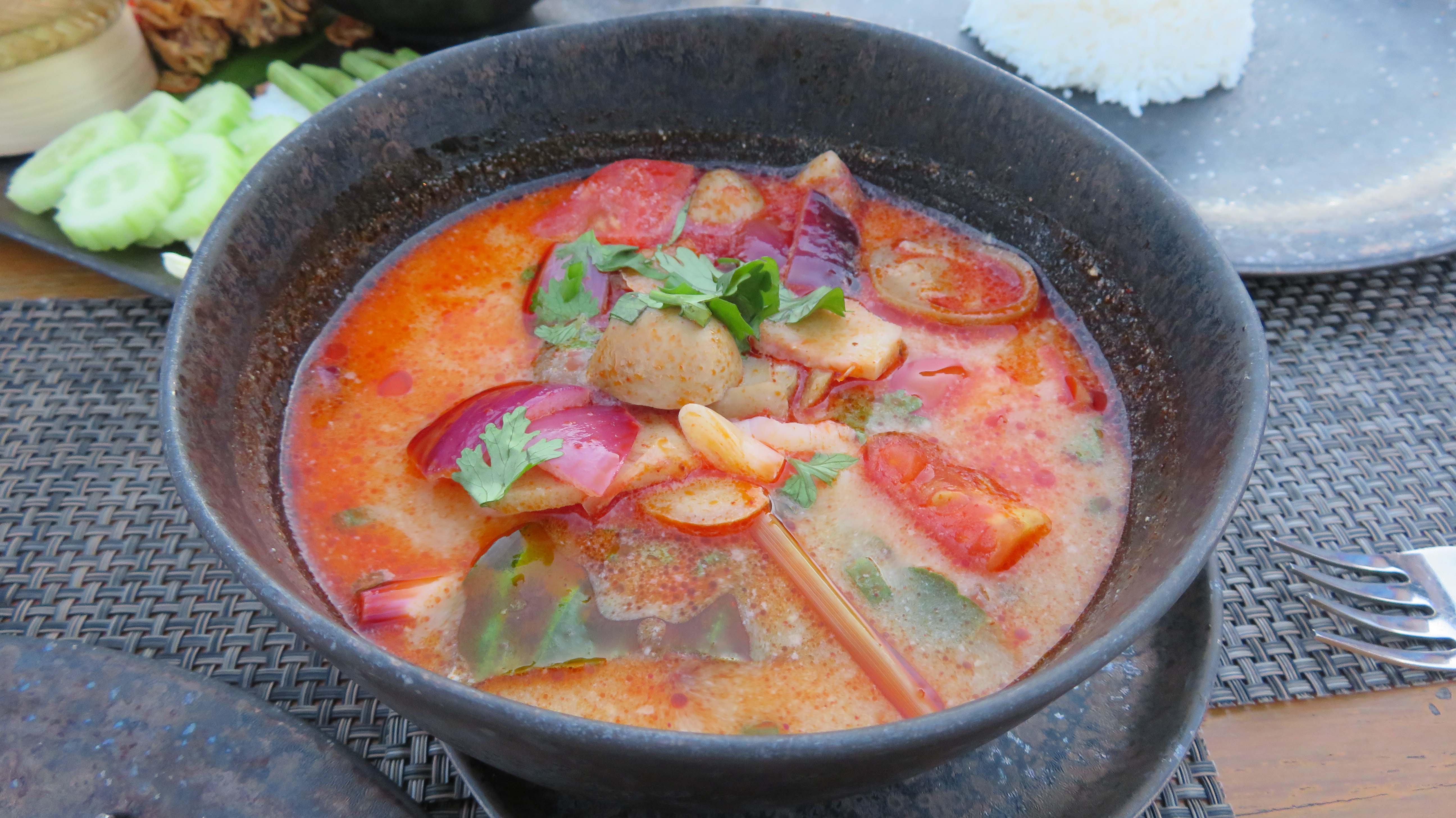 出てきた軽食。 本格的なチキン・カレーだ。 うまかったが、私は怖くて 殆ど喉を通らなかった。 |