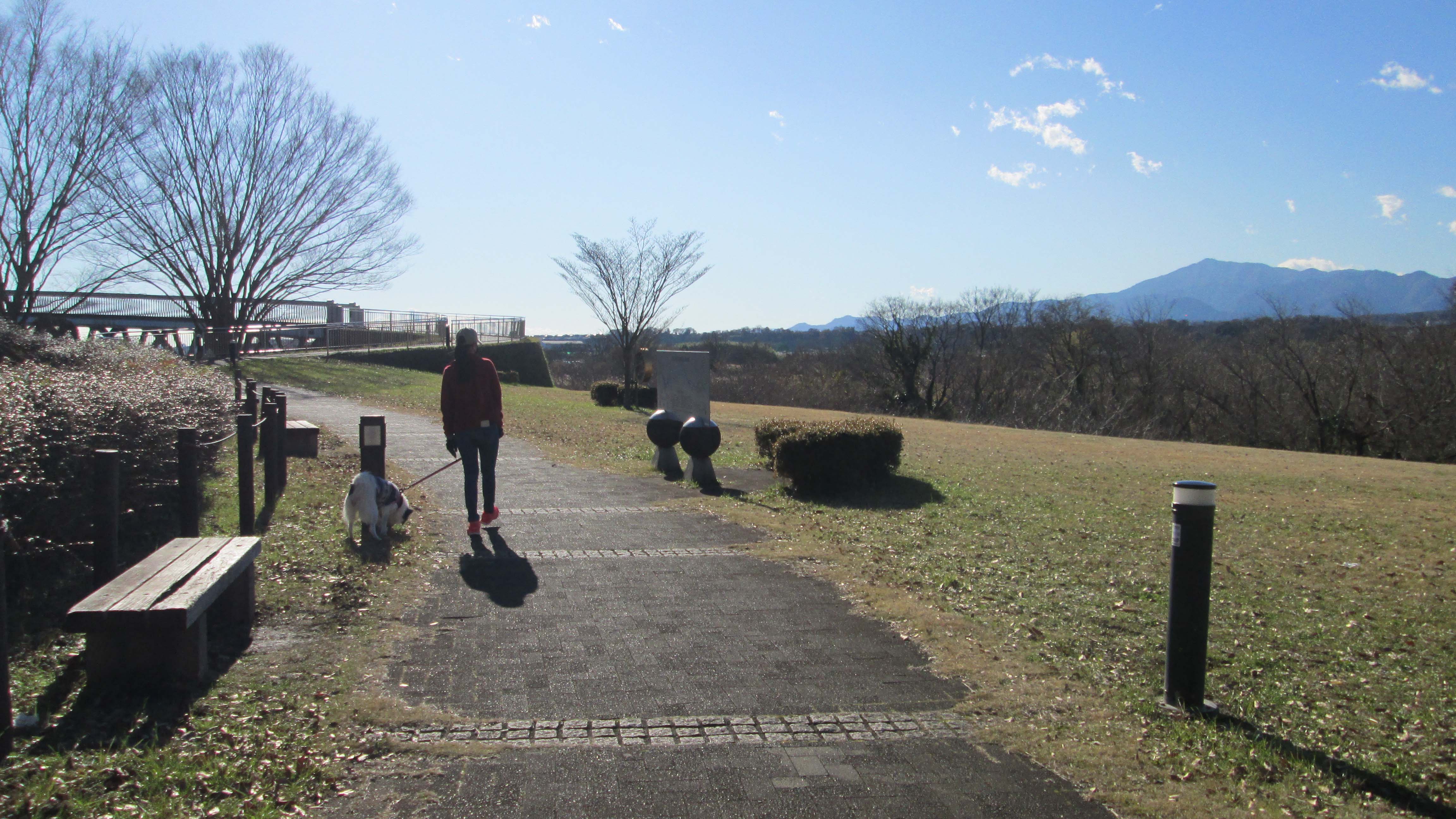 | 立ち止まると、飼い主の方を振り向くマリー。 | |||