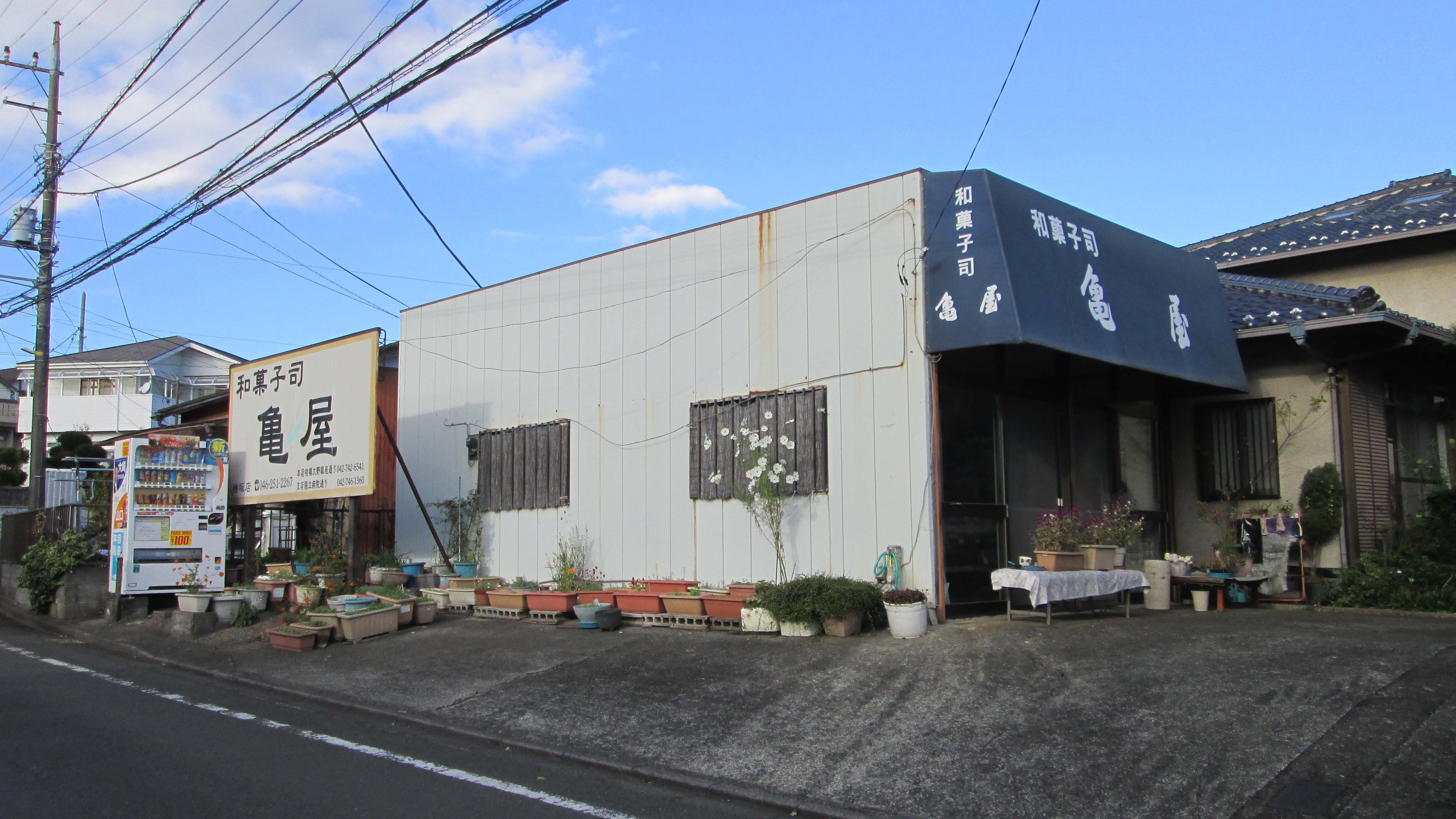 この辺は廃れている。 | 和菓子屋がある。 入るとキンコーンという音がして、 奥の民家から老婆が出てきて 店に入ってきた。 |