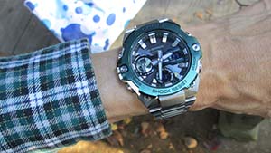 | この日は緑色のシャツを来ていたので、GST-B400CDを装着。 | 手洗いがあったが、ロックされていた。 | 地元商店。 | |