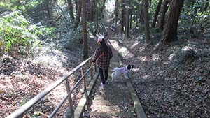 | 山の下は畑、裏道は山道になっていて、どこかに抜けられるようだった、 | マリーがちゃんと振り返って主人が 来るかどうか確認している。 彼女は怖いのも好きなのも 妻のほうだが、 しっかり家長を認識している。 |