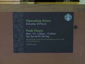 | これが件のスターバックス。 | ここの店内席での飲食を夢見ていたのだが、繁盛していると見えてテーブルは汚く、座る気になれなかった。 Orchard Road沿いの店舗と異なり無料のWiFiスポットは設置されていなかった。 |