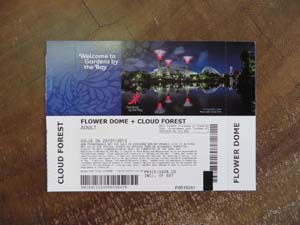 | 温室の入場券は、大人一人$28で、 チケットは左写真のように切り取り式になっており、 FLOWER DOMEとCLOUD FORESTとそれぞれ入場した方から 切り取る仕組みになっている。 |