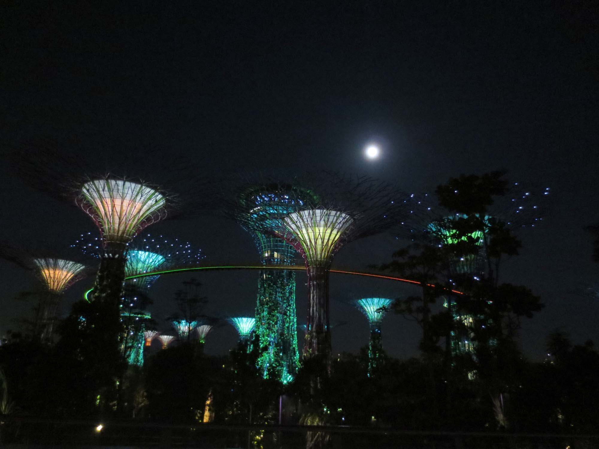 Supertree Groveのあるエリアは、いつもなのかどうかは不明だが、 20:30〜21:00頃までだったと思うがイルミネーション・ショーが行われる。 Golden Gardenエリアの3本のツリーではショーは行われない。 |