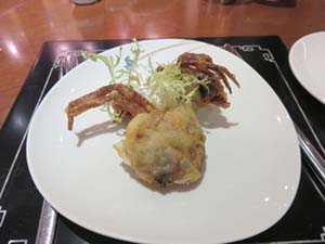 お茶はポットで$7 | ふかひれスープ $33 | ソフトシェルクラブの唐揚げ @$8 これが一番美味かった。 |