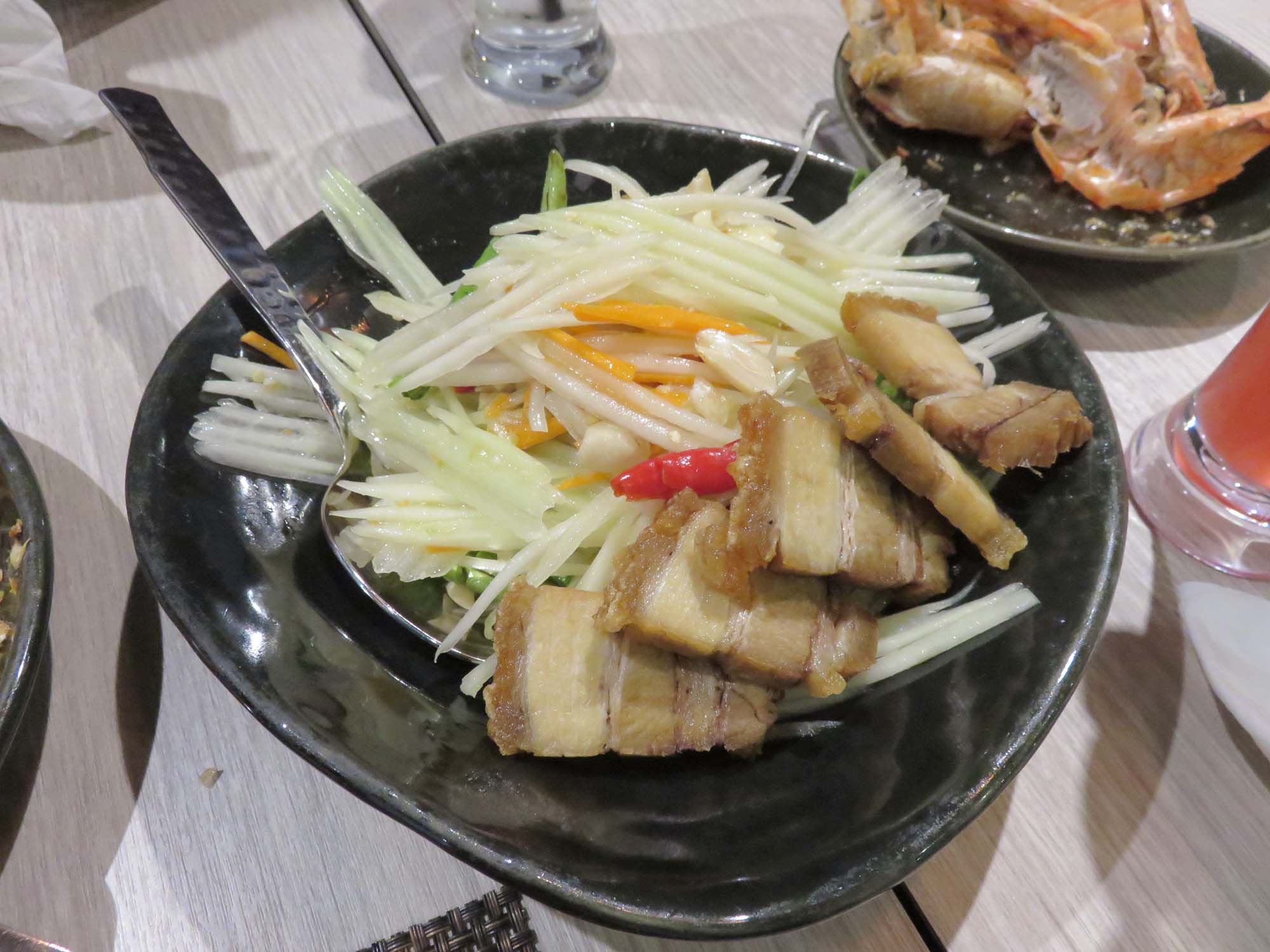 | ソム タム クン ムー クロープ $13.9 パパイヤサラダの豚肉添え |