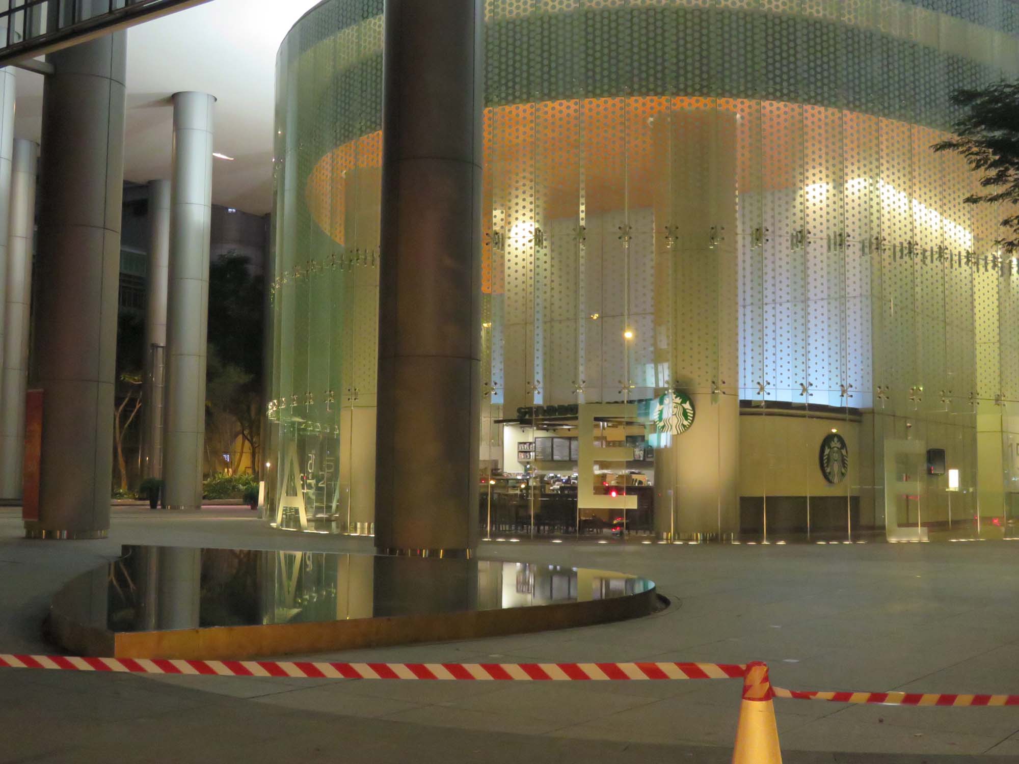 | DELFI脇のクレイソン・ロード。シンガポールにもKTVってあったのか・・・ | スターバックスの営業時間。 | |||