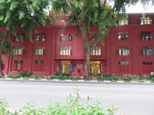 さて、この赤い建物は「歴史的建築物」でデザイン事務所や博物館が入っているとのこと。 ところが・・・ |