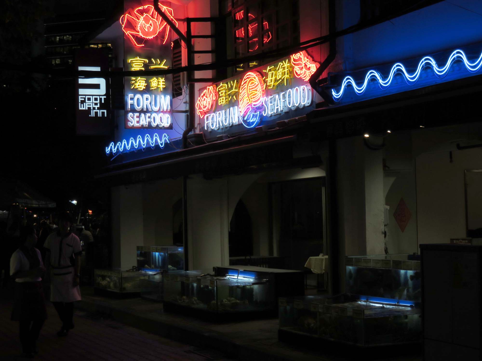 シーフード店もネオンは楽しいが、 この場合のシーフードというのは タイor中華料理であり、ここまで 来てシーフードはないだろう。 |