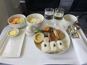 | 行きの食事。豚肉。美味かった。 | こっちは鶏肉。 美味かった・・・のかなあ?w |