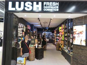 | 写真では我々が買い占めたので展示品がなくなっているが、 タイや日本では売っていないロクシタンの口紅が妻のお気に入りで、 去年買って味をしめたので、今年の主要目標のひとつになっていた。 |
