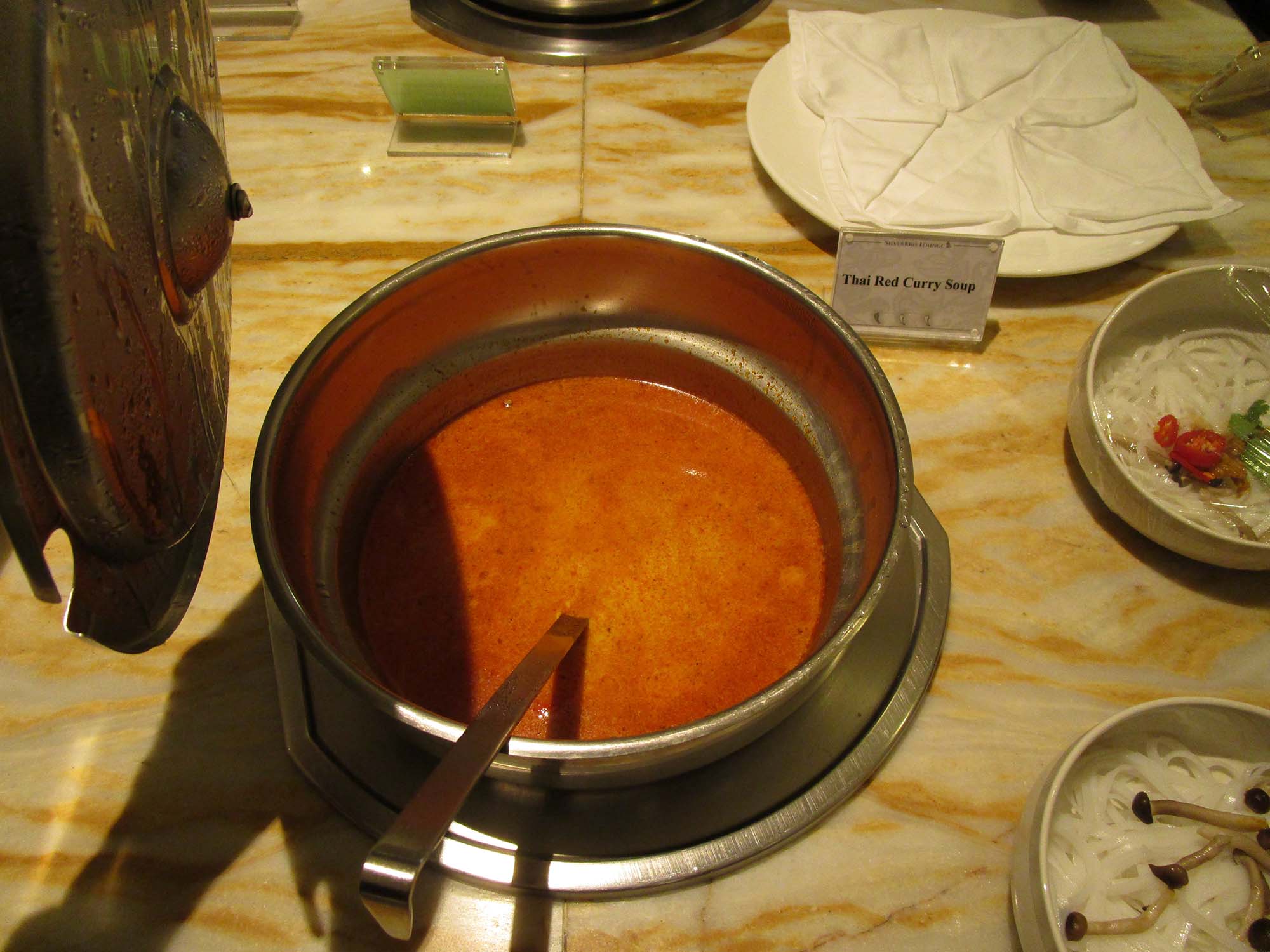 | 寿司やそばはなくなっていた。 | グッディオ(タイ風の米の麺) | これに浸けて食べろとのこと | カレー麺はいやなので、 こちらのスープに。 |