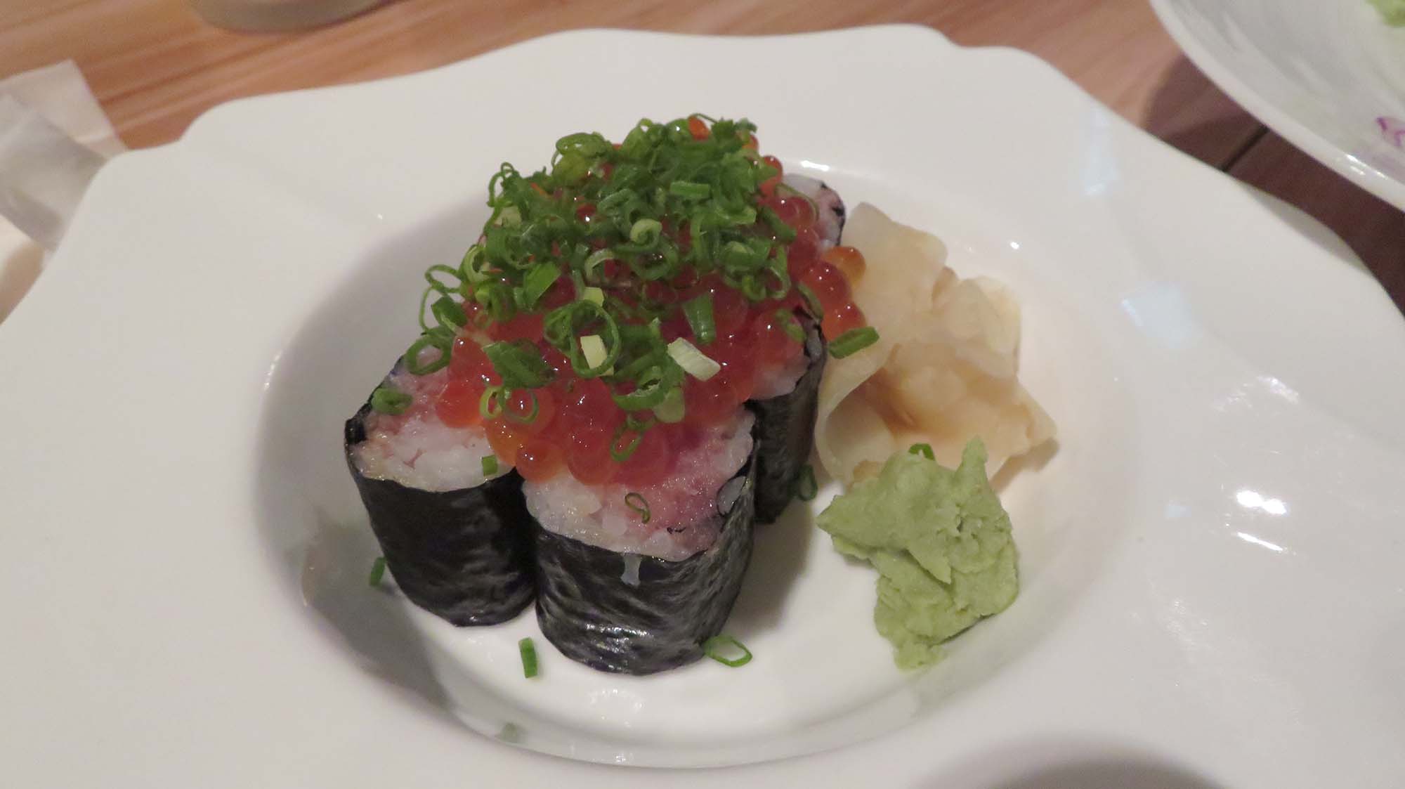 | にぎり9貫セット $78 | おいしロール $38 | 特選サラダ $13 | 抹茶ブリュレ $15 | |