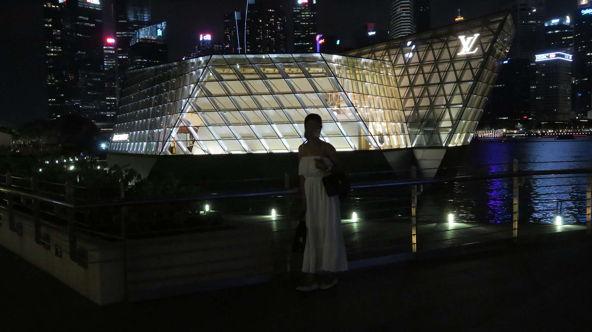 | ルイ・ヴィトンの店。今回は建物だけだ。 | あの蓮の花型のステージは 何だろう? |